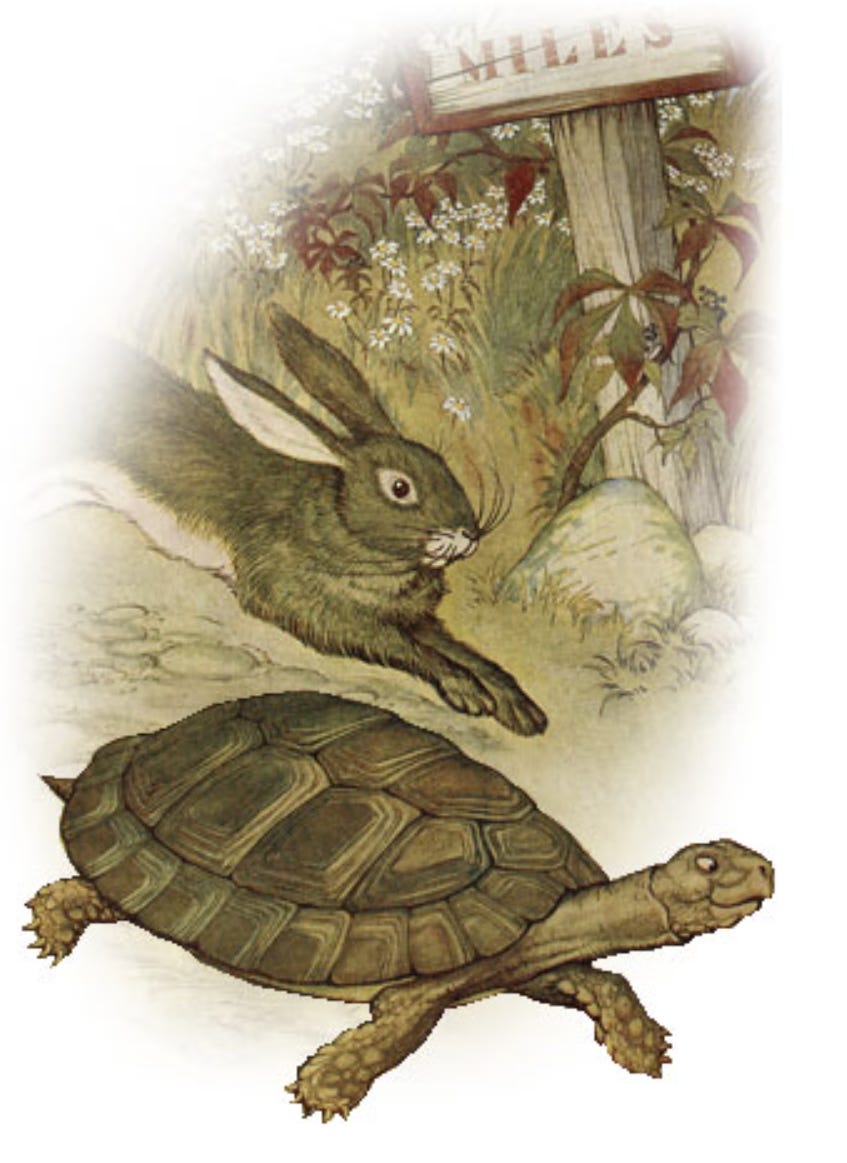 Just in case you don’t remember the Aesop’s fable of the tortoise and the hare… the hare was mocking the tortoise for his slowness, so the tortoise challenged the hare to a race. The hare, assuming an easy win, took off, saw his huge lead on the tortoise, and chose to nap. Meanwhile, the tortoise kept plodding along. Eventually, the hare awoke and realized that the tortoise was near the goal. But no matter how fast the hare ran, he now couldn’t beat the tortoise to the finish line. The motto is, “The race isn’t always to the swift.”